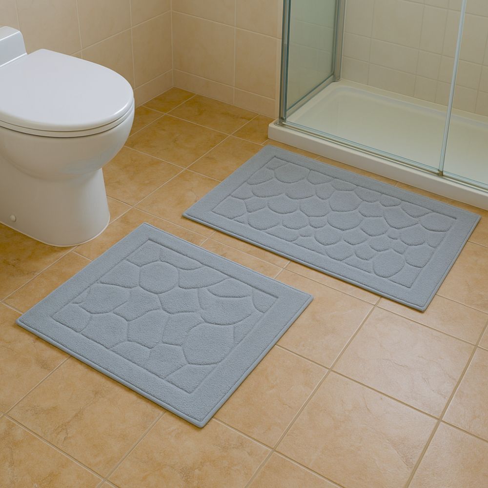 Preprogi velikosti 60×100 cm in 50×60 cm sta idealni za uporabo pred kadjo, tušem ali umivalnikom. Zahvaljujoč nedrseči podlagi ostaneta na mestu tudi na mokrih ploščicah, obenem pa učinkovito vpijata vlago in se hitro sušita.