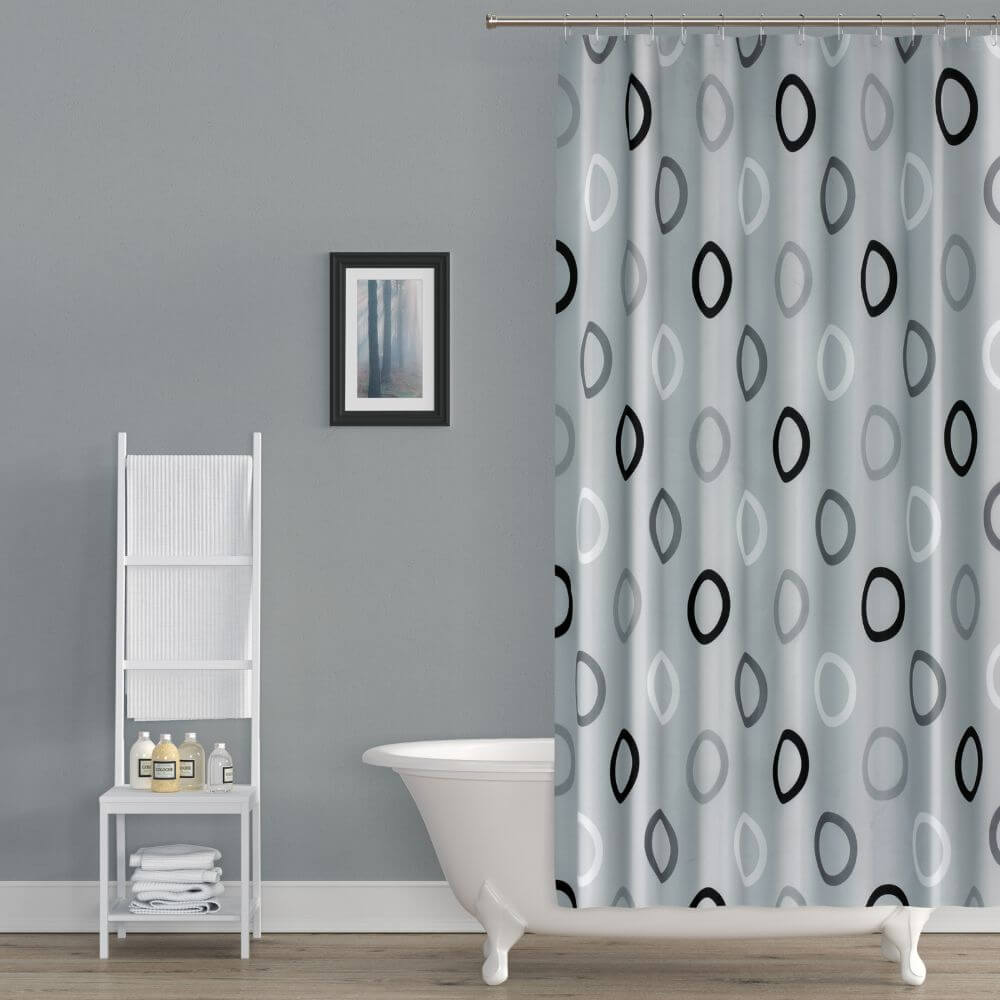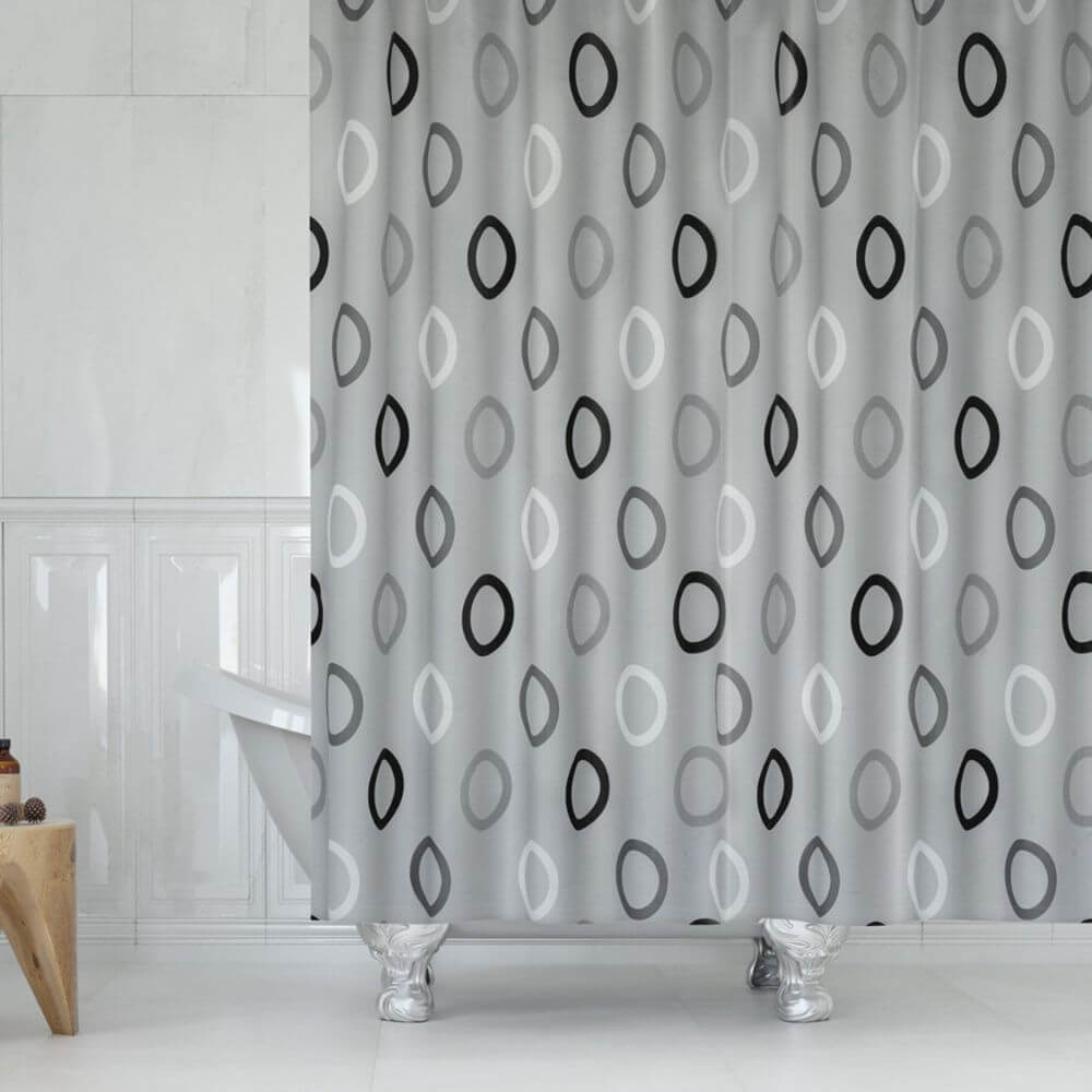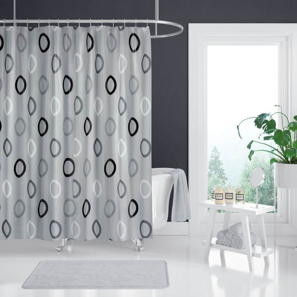 Zavesa za tuš RINGS 180x200 cm | Vodoodporna tekstilna kopalniška zavesa s potiskom + 12 plastičnih obročev