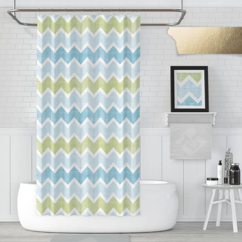 Zavesa za tuš ZIGZAK 180x200 cm | Vodoodporna tekstilna kopalniška zavesa s potiskom + 12 plastičnih obročev